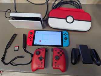 Nintendo switch OLED with red/blue joycons and extra set of hori joycons and harvest moon$220Marysville, WA