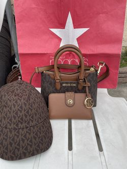 Michael Kors Austen Brown XSmall Satchel with wallet NWT Michael Kors Signature Logo black Cap Hat NWT pick up location in the city of Pico Rivera $210Montebello, CA