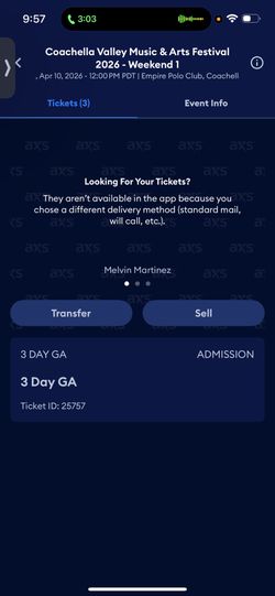 3 DAY COACHELLA TICKETS FOR SALE WEEK 1$900Los Angeles, CA