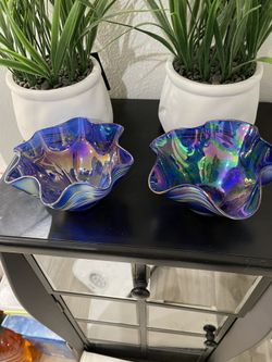 Two Blue Iridescent Glass Vases$20Covington, WA