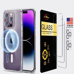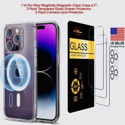 High Quality 1 14 Pro Max MagSafe Magnetic Clear Case 6.7 inch + 3 Pack Tempered Glass Screen Protector + 2 Pack Camera Lens Protector.$9Philadelphia, PA
