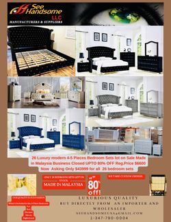 26 Luxury modern 4-5 Pieces Bedroom Sets lot on Sale Made in Malaysia Business Closed UPTO 80% OFF$43,999Philadelphia, PA