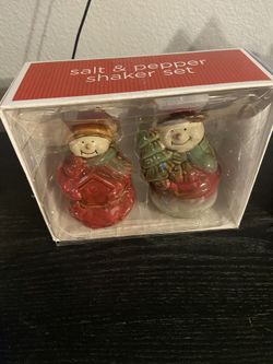 Darling Snowman Pottery Salt & Pepper Shaker Set Winter Red Brown Green 4 inch$15Las Vegas, NV