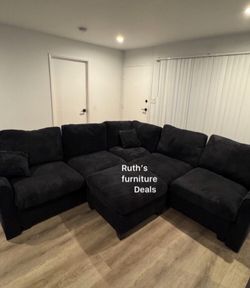 On sale stylish ‼️ U shape sectional sofa black Corduroy fabric material$439Pico Rivera, CA