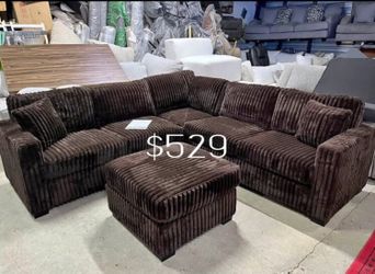 Gorgeous ‼️sectional sofa with ottoman chocolate fur-like jumbo corduroy$525Pico Rivera, CA