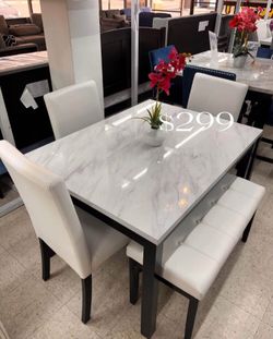 5-pc dining table set white faux marble table top$299Pico Rivera, CA