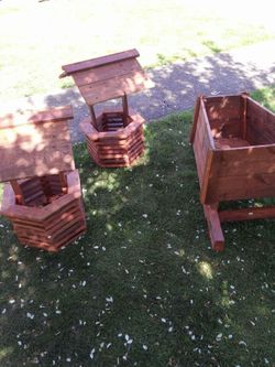 Wishing well, wheel barrow planters for lawn decor$50Rainier, OR