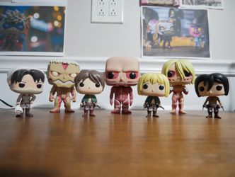 Out Of Box Attack On Titan Funko Pop Lot! - Oob Armored Titan, Female Titan, Colossal Titan, Eren, Mikasa, Cleaning Levi And Armin (cheaper W/ Pickup)$630Chicago, IL