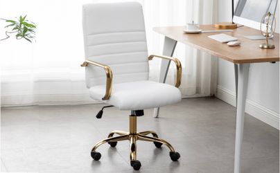Ergonomic White Faux Leather Adjustable Home Office Arm Chair Golden Finish$125La Habra Heights, CA