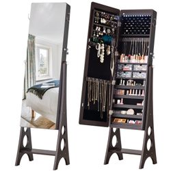 Large Storage Jewelry Mirror Organizer with Frameless Free Standing Jewelry Cabinet (Brown)$99La Habra Heights, CA
