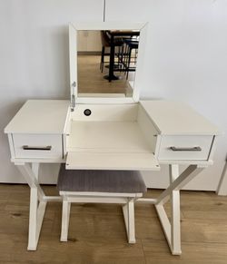 White Wood Makeup Vanity Desk w/ Stool$120Wheeling, IL