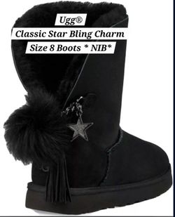 UGG® Women's Black Sz 8 Classic Star Bling Charm Boots Pom Pom NEW IN BOX $175Stockton, CA