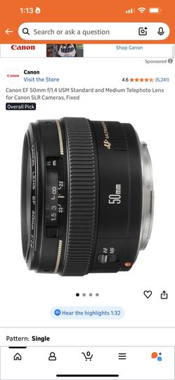 Canon EF 50mm f/1.4 USM Ultrasonic Lens for Canon EF Mount$200Bakersfield, CA