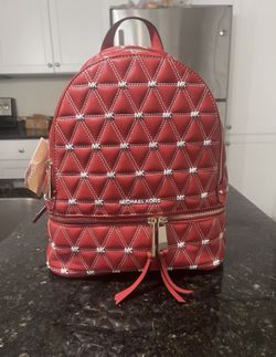 Michael Kors Rhea Zip Backpack Red White Gold Quilted Leather Travel Bag - Brand New$150Laurel, MD