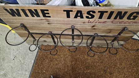 Rustic, wall-mounted wine rack made of wood and metal.$20Jersey City, NJ