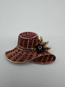 Vintage Red Hat Society Rhinestone Paved Brooch Pin Pendant Gold Tone$17El Dorado, CA