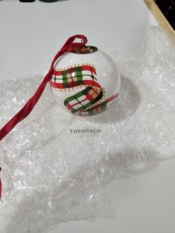 Tiffany&Co Ball Christmas Ornament Este Ceramiche Plaid Ribbon Ceramic Italy Box$150Parsippany-troy Hills, NJ