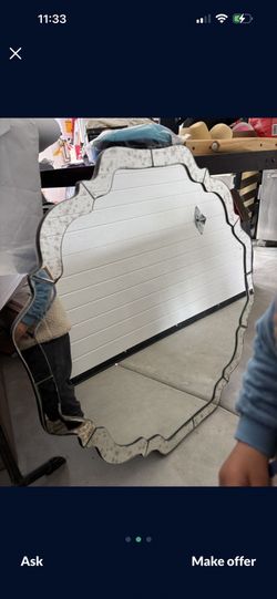 stunning decorative Venetian-style scalloped wall mirror featuring beveled edges and reverse etched details$125Carson, CA