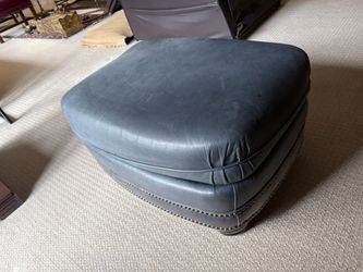 Slate Blue-Gray Leather Ottoman with Brass Details and Wooden Feet $59Tacoma, WA