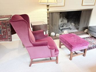 Wine Colored Suede Wing Back Chair And Ottoman$75Tacoma, WA