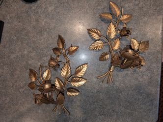 Vintage Italian Leaf Design Gilt Gold Tole Metal Candle Wall Sconce,$400North Attleborough, MA