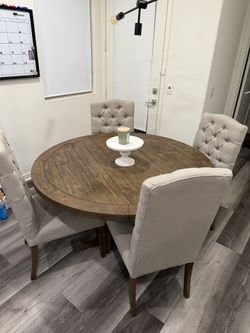 Round Wood Dining Table w/ 4 Upholstered Chairs โ Excellent Condition $550 OBO$550Upland, CA