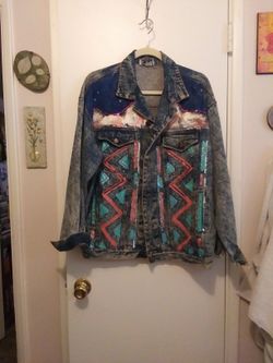 Vintage Acid Wash Painted Jean Jacket Sz L$60Tempe, AZ
