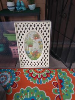 Vintage Lattice Framed Floral Off White Plastic Picture 19 X 30$10Tempe, AZ