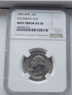 1965 SMS 25 cent 5% curve clipped Mint Error AU 58$85Fresno, CA