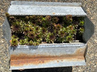Vintage Metal Tool Box Planted with Red-Tipped Hens and Chicks$40Gladstone, OR