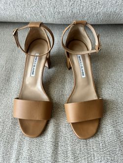 Manolo Blahnik Leather Block Heel Sandals Camel Size 38 Made in Italy$200Richardson, TX