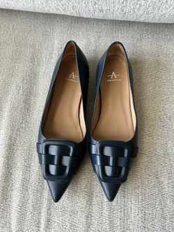 Authentic Aquatalia navy leather pointed-toe flats with buckle detail. Made in Spain.$75Richardson, TX