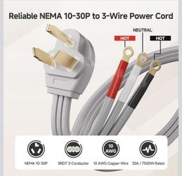10 AWG 3 Prong Dryer Cord - 6ft, 30A / 7500W Rated$19Las Vegas, NV