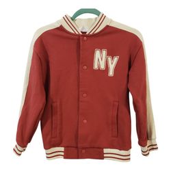 H&M Kids Youth Brick Red NY Baseball Jacket Size 8/10 Sporty Stripes Snap Button$5Spanaway, WA