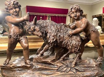 Antique French Terra cotta Signed Sculpture of Two Playful Putti (cherubs) with a Goat$450Alhambra, CA