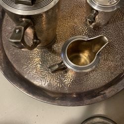 Sheffield Tea Set Platter, Tea Pot, Sugar And Creamer Containers$100Hollister, CA