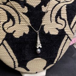 Real freshwater silver pearl on Eiffel Tower pendant necklace$10Berenda, CA