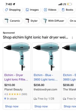 Elchim Dryer Light lonic Fifties Dryer, Retro Blue $180Los Angeles, CA