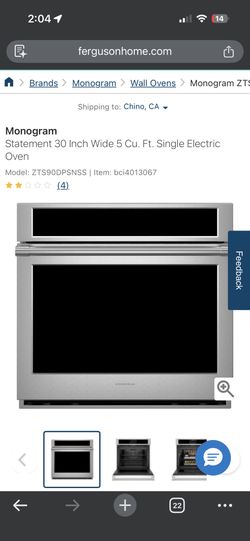GE 30” Monogram Single Electric Oven$900Chino Hills, CA