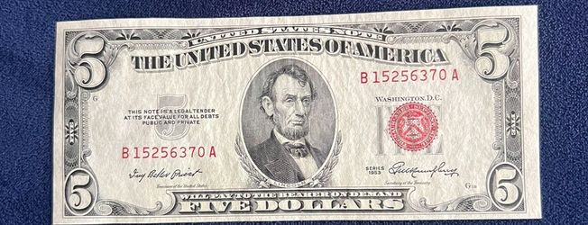 $5 bill Red Seal 1953 $30Las Vegas, NV