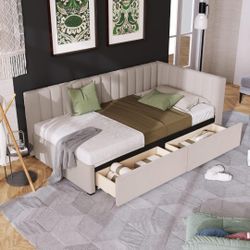 Merax Twin Daybed Upholstered With Drawers And Zinus 10 Inch Ultima Memory Foam Mattress And Covers, Complete Set$100Artesia, CA