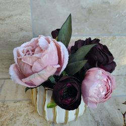 Burgundy and Pink Silk Flower Arrangement on a Gold Vase$33Los Angeles, CA