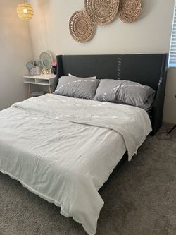 Grey Bed Upholstered Headboard And Frame For king Size $200Chino Hills, CA