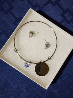 Heart Charm Bracelet With Letter L and Earrings Stud Heart/Wing Set$15Houston, TX