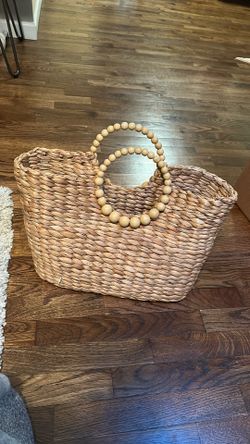 Natural Woven Tote Bag With Wooden Handles $15Tacoma, WA