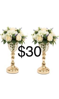 13.2in Gold Vases for Centerpieces, 2Pcs Crystal Vases for Flowers, Metal Floral Stands for Wedding, Flower Stands for Table Wedding Reception Party E$30Bakersfield, CA