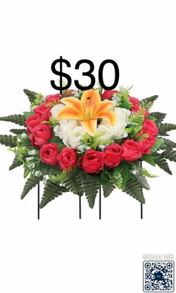 Artificial Cemetery Flowers,Grave Decorations Handcrafted Fake Birthday Flowers Cake,Silk Memorial for Cemetery for Headstones Decoration (Red$30Bakersfield, CA