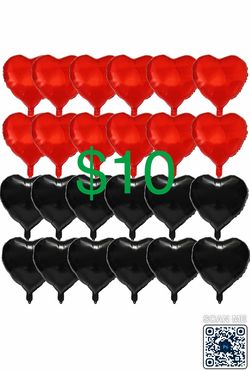 24 PCS Red Black Heart Aluminum Foil Balloons – 18" Foil Balloons Set for Valentine's Day, Anniversary, Mother’s Day,Wedding Bridal Engagement Party D$10Bakersfield, CA