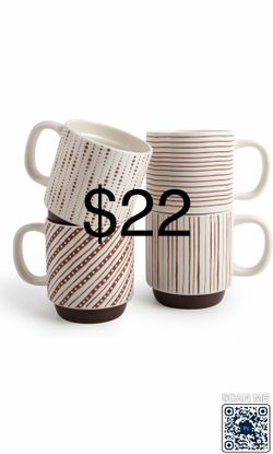 DOWAN Stackable Coffee Mugs, 12 oz Ceramic Coffee Mug Set of 4, Coffee Cups with Geometric Patterns for Latte, Cappuccino, Cocoa, Dishwasher & Microwa$22Bakersfield, CA