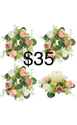 Small Candle Rings Wreaths 4Pcs Pink Rose Artificial Flowers Mini Christmas Wreath for Wedding Kitchen Table Home Decor (Pink$35Bakersfield, CA